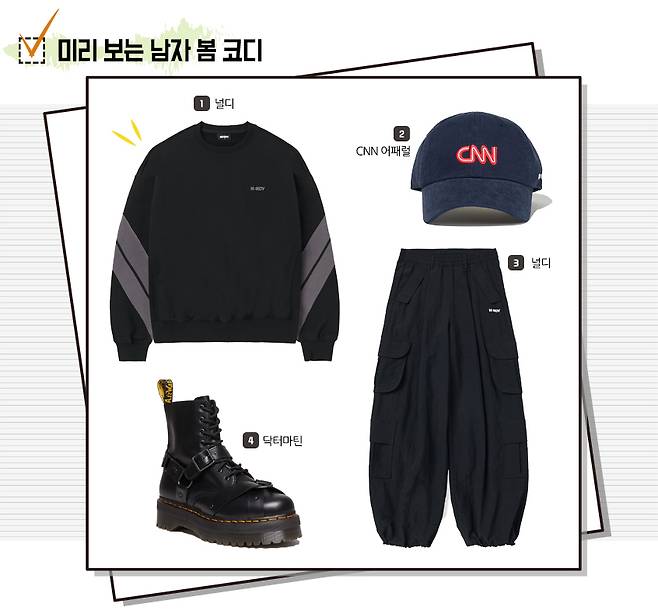 맨투맨 코디 역시 봄 시즌 스테디 스타일링이죠?