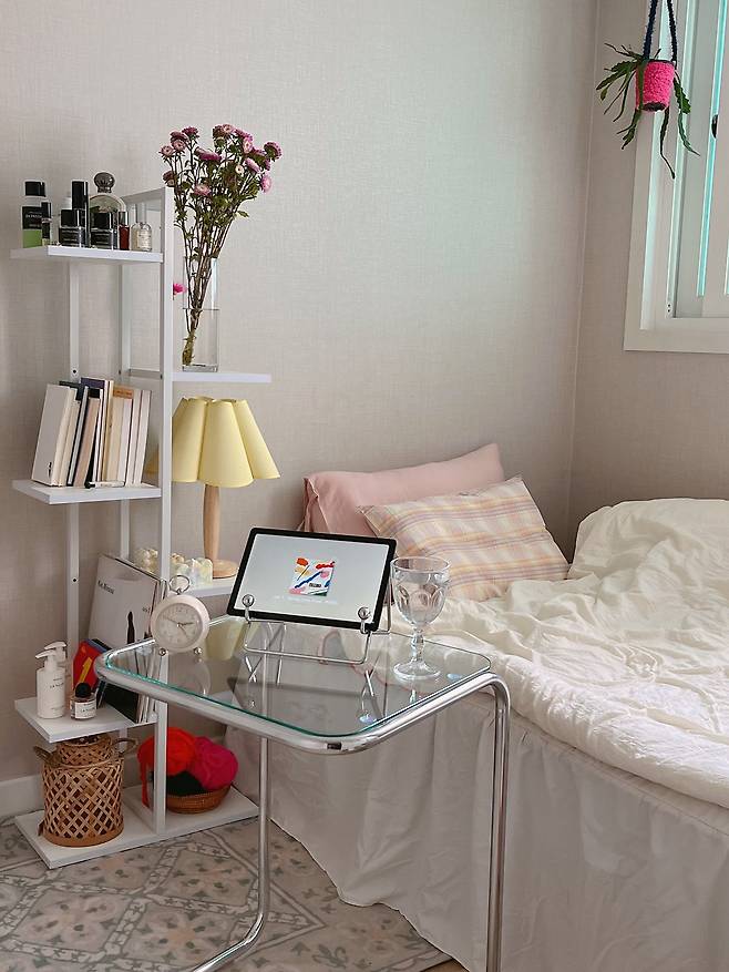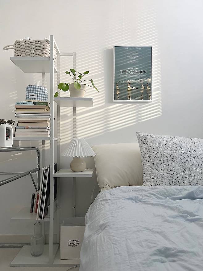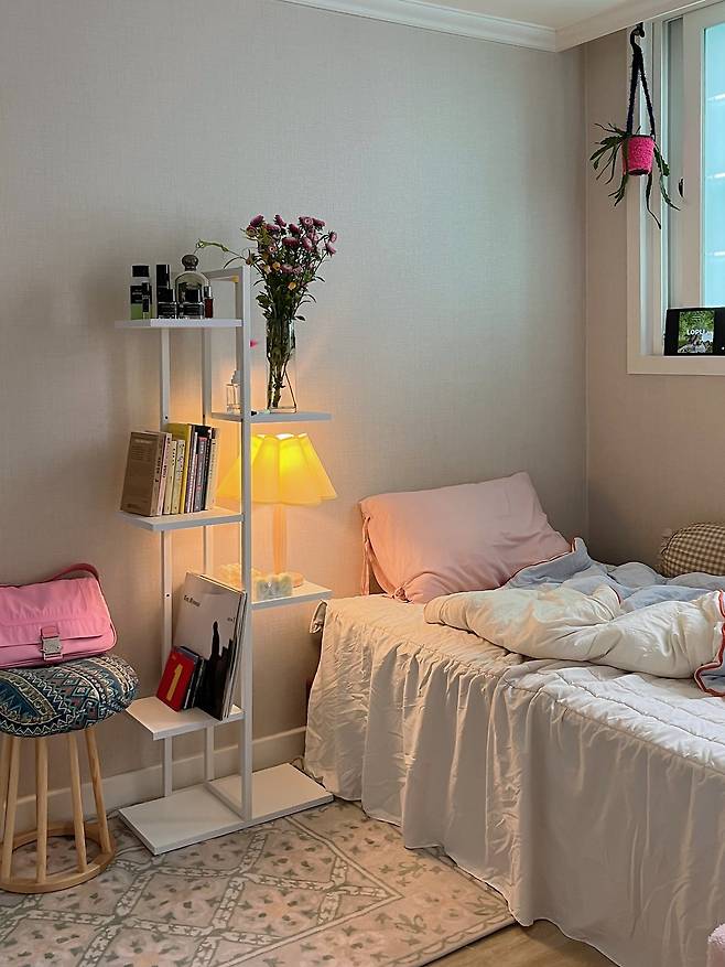 화이트 페인트라 너무 차가워 보이지는 않을까 걱정했지만, 소품이 모두 코지한 느낌이라 오히려 더 방이 화사하고 아늑해 보이더라고요. 정말 만족했어요.