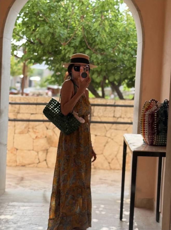 챙 넓은 스트로햇과 블랙 선글라스로 분위기를 더한 황신혜는, 짙은 그린 니트 백과 라탄 바스켓백으로 감각적인 믹스매치를 선보였습니다.
