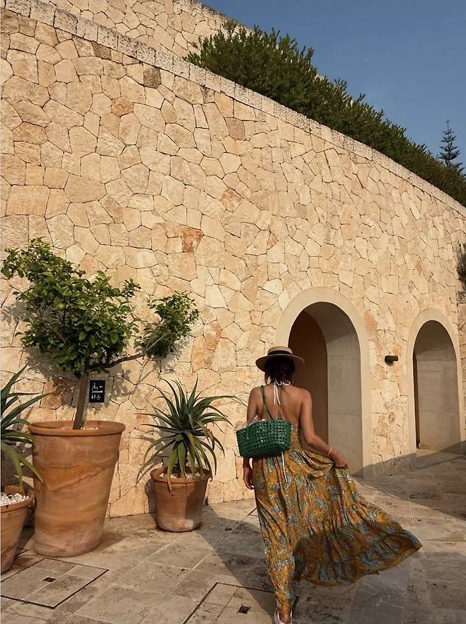 특히 석벽 앞 백리스 뒷모습은 자연과 조화를 이루며 마치 화보 한 컷처럼 완성도 높았고, 편안한 플립플랍 슈즈까지 더해 진정한 '꾸안꾸' 바캉스룩의 교과서를 입증했습니다.