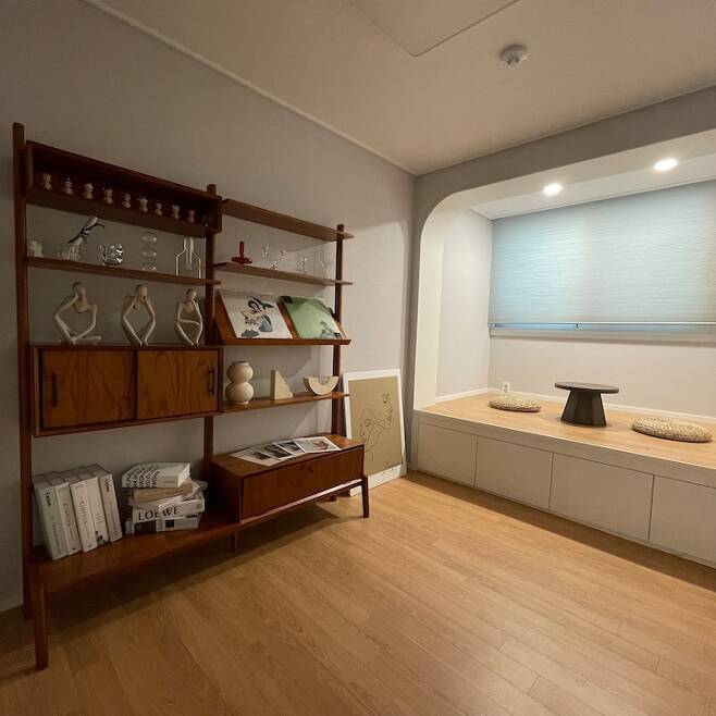 창틀도 조금 더 늘려서 윈도 시트처럼 앉아서 차도 마실 수 있어요. 친구들이 여기에 앉아서 포토존이라며 사진을 많이 찍더라고요.