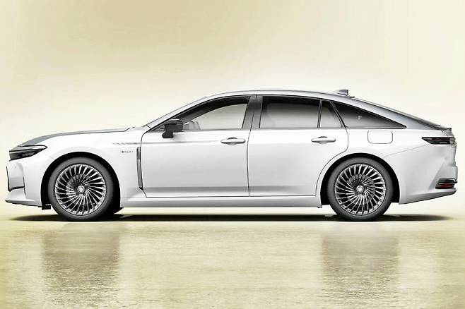 실내는 블랙 루스트 컬러 테마를 기반으로, 우드 그레인 트림과 레이저로 각인된 대시보드 엠블럼, 그리고 보석처럼 세공된 전용 기어 셀렉터가 적용되었다. 심지어 사용 설명서 보관용 재생 가죽 파우치와 키홀더, 웰컴 라이트까지 동일한 상징 요소를 반영하며 브랜드 정체성을 더욱 강화했다. 동력계는 2,500cc급 하이브리드 또는 미라이 기반 수소연료전지 시스템이 탑재된다.
