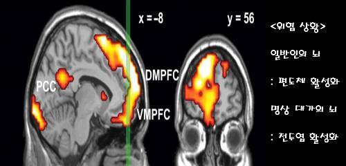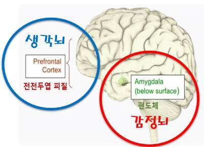 반면, 동물의 뇌라고 불리는 변연계 내부의 편도체는 위협과 관련된 본능적 부문,