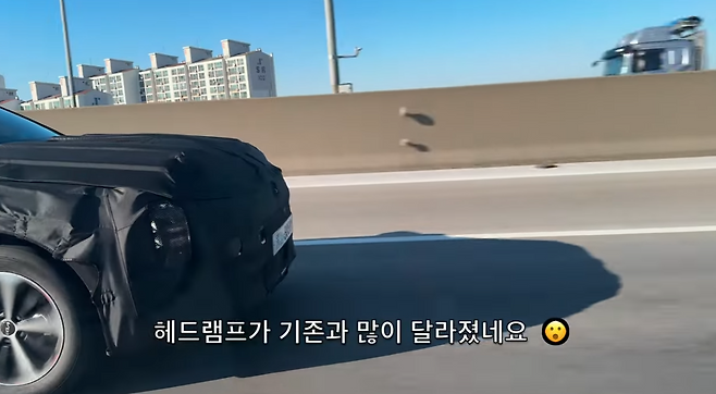 이번 K8 페이스리프트 프로토타입은 서해안고속도로 행담도 휴게소 부근에서 포착됐다. 화성시 임시 번호판을 부착했으며, 고속도로를 빠르게 달리고 있었다.