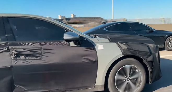 궁금증을 자아냈던 기아 K8 페이스리프트(F/L)의 전면부 모습이 일부 공개됐다.