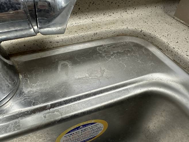 싱크대에 물기가 마르면 생기는 하얀 물 얼룩인데요. 깨끗하게 청소해도 지저분해 보여서 정말 신경 쓰이더라고요.