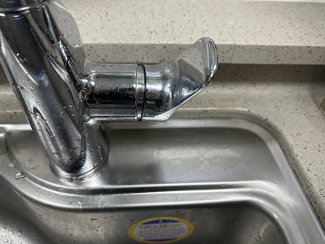 싱크대에 물 얼룩이 생긴 곳에 물티슈를 1분 동안 올려두도록 하겠습니다.