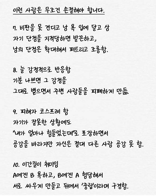 본성이 못돼 쳐먹은 사람 특징 10가지