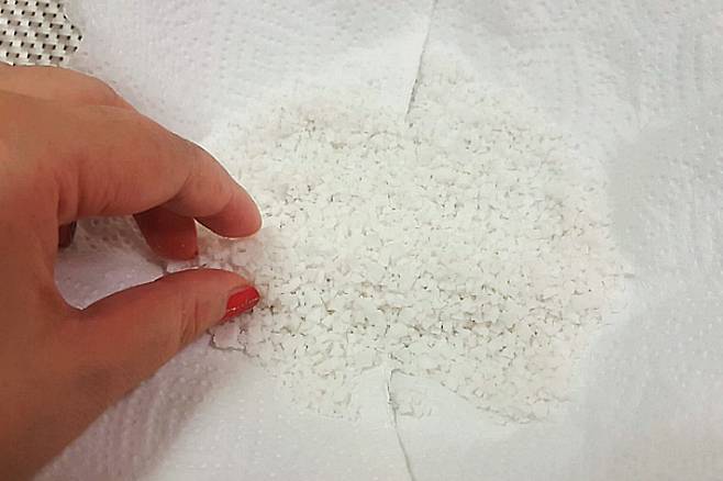 잠시 후 확인해 보니 소금이 눅눅함은 사라지고 뽀송뽀송해졌어요. 살균 효과도 있다고 하니 일석이조입니다.
