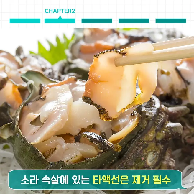 보통 삶은 소라는 속살에 있는 타액선을 제거해야 합니다. 모든 소라에 있는 건 아니지만 삐뚤이 소라, 참소라, 전복 소라의 경우엔 타액선이 있어 반드시 제거하고 섭취해야 합니다. 뿔소라의 경우는 타액선이 없다고 하네요.