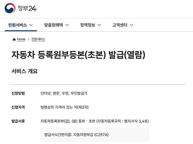정부24 또는 자동차민원 대국민포털에 접속