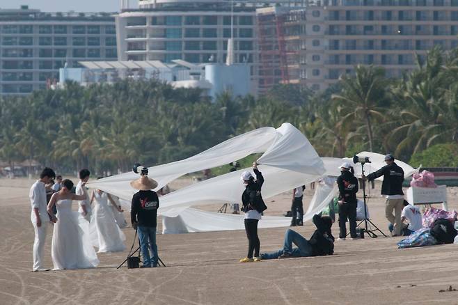 중국 최대의 휴양지로 손꼽히는 이곳에서 정작 가장 많이 볼 수 있는 장면은 웨딩 촬영을 위해 몰려든 신혼부부들입니다.