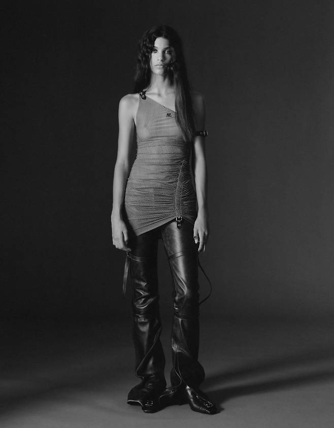 꾸레쥬 클럽과 컬렉션의 클럽 친화적인 실루엣, 그리고 디 펠리체의 비전은 브랜드의 DNA와 완벽하게 어우러진다. 앙드레 꾸레쥬(André Courrèges)는 60년대 우주를 떠올리는 패션을 선보이며, 다리를 드러내고 몸에 딱 붙는 미니 드레스를 소개한 디자이너다. 이는 여성의 몸과 움직임을 해방시킨 전례 없는 실루엣이었다. 디 펠리체는 ‘들려지거나’ 몸을 통해 경험되어야 한다는 롤랑 바르트(Roland Barthes)의 음악론이 처음 소개한 실용 음악(musica practica)으로서 클럽 음악을 사랑한다.