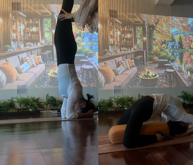 • 요가 인증샷: 요가 매트 위에서 다양한 자세를 취하며 운동하는 모습이에요.