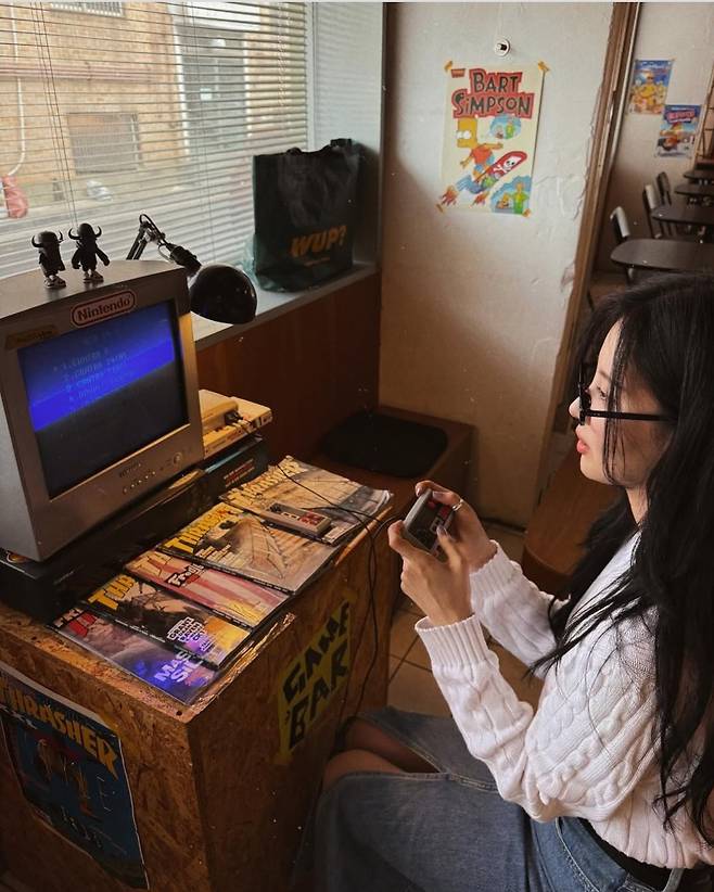여기에 자연스럽게 흐르는 롱 웨이브 헤어와 클래식한 안경 프레임까지 더해 편안하면서도 분위기 있는 코디를 완성했습니다.