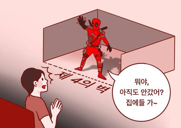 <데드풀>식 유머의 가장 큰 특징은 끝이 없는 수다와 거기서 비롯되는, 이른바 ‘뇌절’이다.