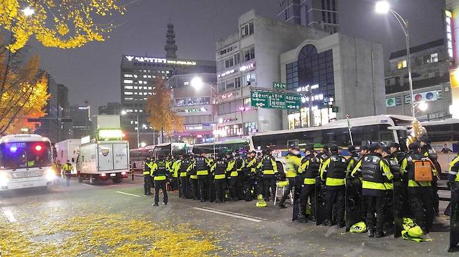 | ▲ 2016년 11월 19일 박근혜 탄핵 집회를 막기 위해 동원된 의경들? |