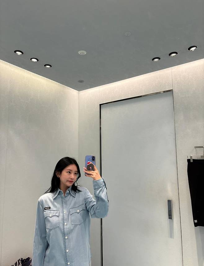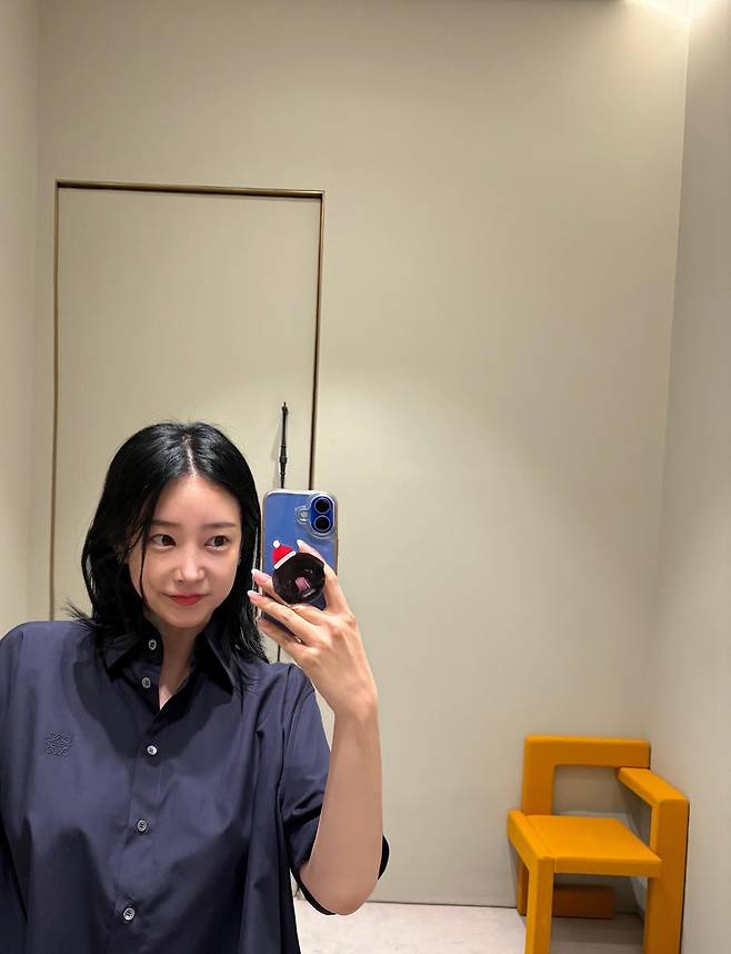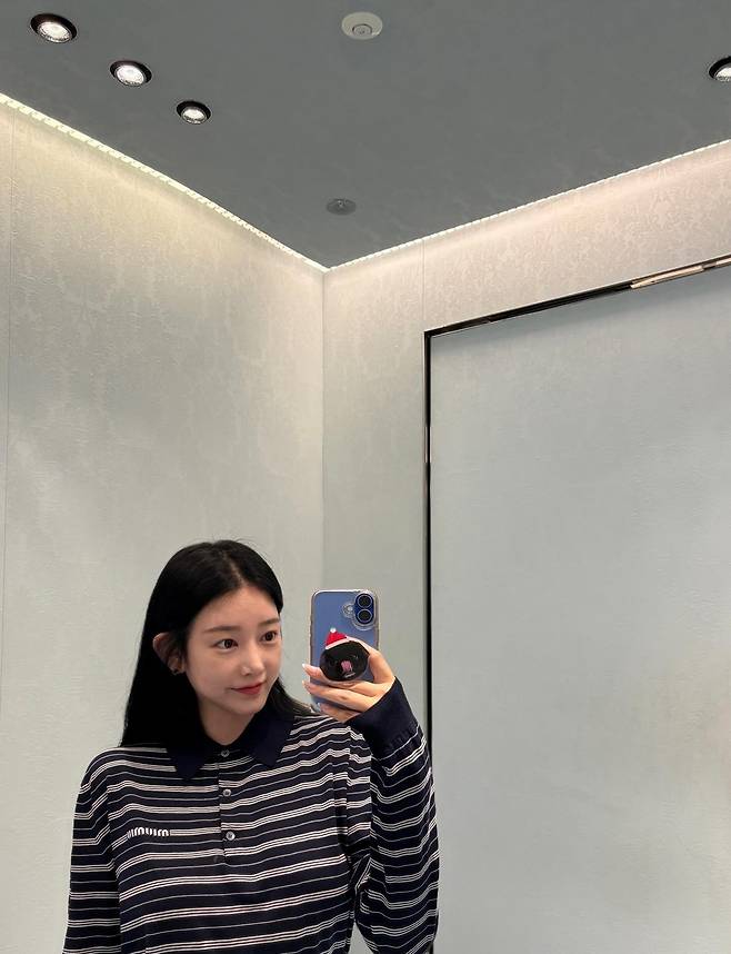 거울 앞에서 찍은 셀카인데도, 스타일은 흔들림 없이 단정했어요.