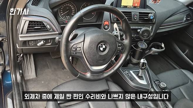 또 다른 장점은 외제차 중에 제일 싼 편인 수리비와 나쁘지 않은 내구성입니다. 그리고 상위 차종과 호환되는 부분이 있어요. 일단은 대부분의 부품이 F30, F40, F바디 1시리즈부터 4시리즈까지 전부 다 호환이 되거든요. 그래서 정비 부분에서도 애프터마켓 부품도 많이 나오지만, 상위 차종과 호환이 되니까 부품은 어지간하면 국산차만큼 빨리 구할 수 있습니다.