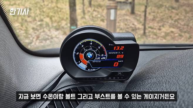 운전석 좌측에 게이지 같은 걸 설치해 놨는데요. 알리에서 구입한 거고요. OBD 게이지인데 수온이랑 볼트 그리고 부스트를 볼 수 있는 게이지거든요. 이 게이지 추가했던 이유는 이 차가 2010년도 차들의 종특인지 모르겠는데 현대차도 그렇고 BMW도 그렇고 수온계가 없더라고요. 근데 이 수온계가 없어서 한겨울에 엔진을 한 번 날려먹을 뻔했어요. 이 차는 플라스틱이랑 고무류에 문제가 좀 있어요.