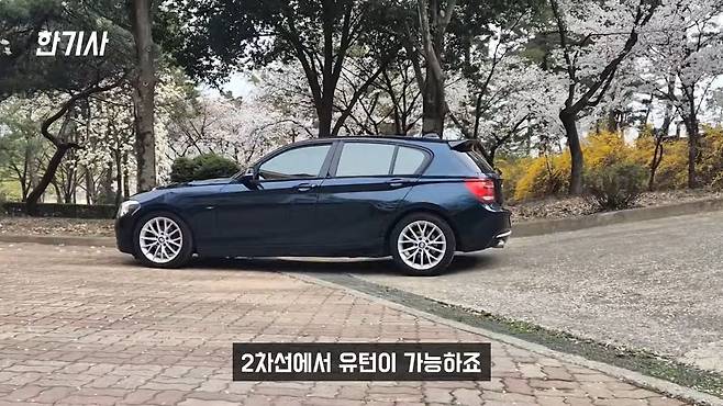 이 차의 또 다른 장점 중에 하나는 회전 반경이 엄청 좁습니다. 바로 전에 탔던 차가 회전 반경이 막장 of 막장인 제네시스 쿠페거든요. 순정은 유턴이 바로 안 되고 후진 한 번 갔다가 돌아야 되는 정도예요. 그러니까 제네시스 바디에다가 쇼바를 낮춰놓은 구조다 보니까 이게 차선 3개에서도 유턴을 하면 한 번씩 걸릴 때가 있었어요. 그 정도로 막장이었는데, 이 차 같은 경우에는 제가 그동안 탔던 차 중에 최고로 회전 반경이 좁은 차입니다. 2차선에서도 유턴이 가능해요.