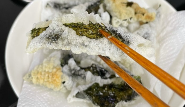 과자 끊기 힘드신가요? 냉장고 구석 눅눅한 김으로 만든 ‘라이스페이퍼 김부각’ 한입이면 바삭함도 건강도 잡을 수 있습니다.