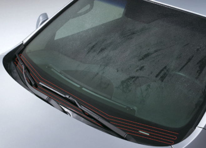 이 기능의 정체는, 자동차 앞유리의 가장 아랫부분, 즉 와이퍼가 평소에 누워있는 바로 그 위치에만 숨겨져 있는 전용 '열선'입니다.