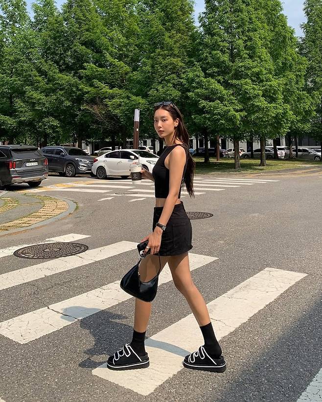 예리처럼 블랙 크롭탑과 미니 팬츠에 포인트 슈즈를 더하는 방식은 누구나 쉽게 따라할 수 있는 여름 코디 팁이다. 특히 유니크한 소재감의 샌들이나 로고 플레이가 돋보이는 아이템을 활용하면, 간편한 룩도 단숨에 센스 있는 스타일로 격상된다.