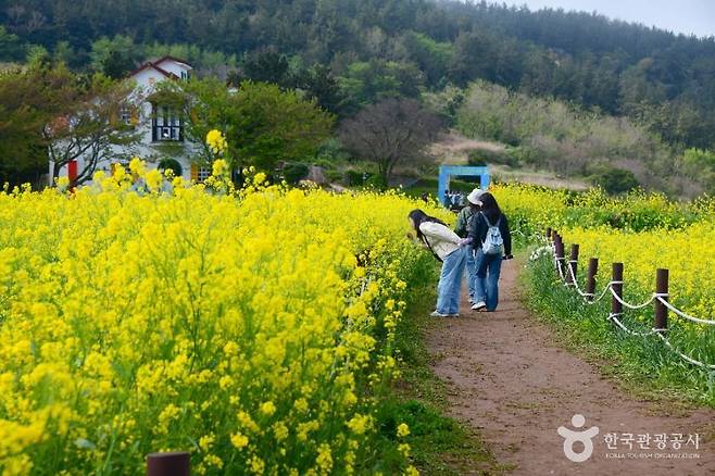 4월의 청산도는 마을 입구부터 항구 너머까지 노란 유채꽃이 만발하여 눈을 즐겁게 합니다. 특히 해안가 마을은 4월 말까지 순차적으로 꽃이 피어나 한 달 내내 절정의 아름다움을 유지하는데요.
