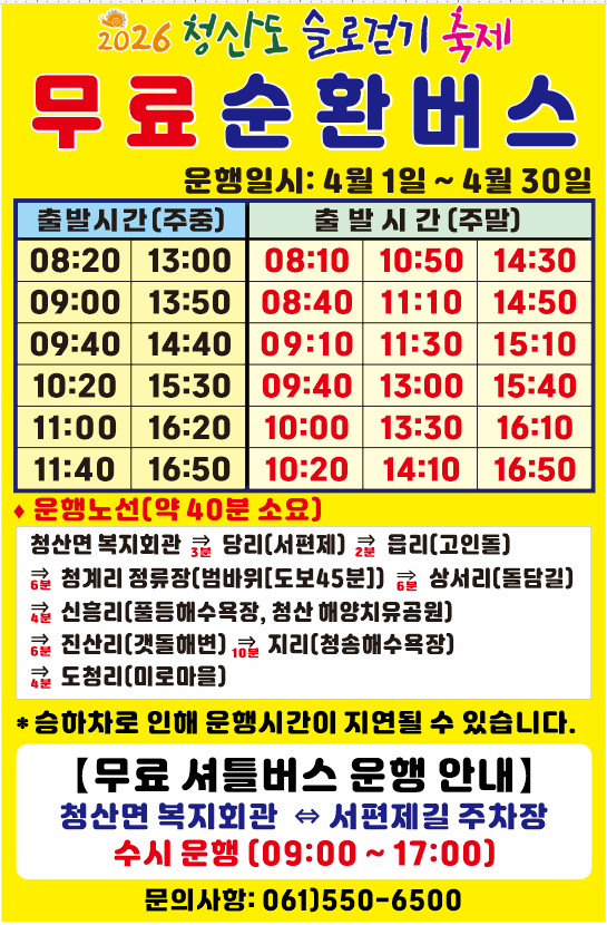 드라이브하듯 섬을 한 바퀴 돌며 주요 명소 3곳을 알차게 둘러볼 수 있는 투어버스는, 짧은 시간 안에 청산도의 정수를 맛보고 싶은 당일치기 여행자들에게 최고의 선택지가 됩니다.