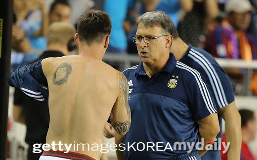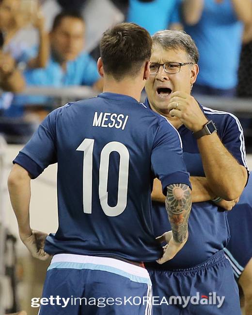 [타타 감독(위 오른쪽)과 메시, 타타 감독(중간), 메시. 사진=게티이미지코리아]