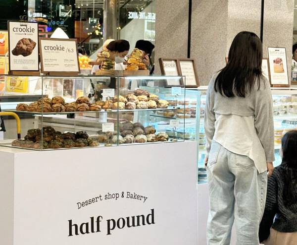 하프 파운드는 설탕과 밀가루를 절반으로 줄여 건강한 빵과 디저트를 만드는 프리미엄 디저트 전문점이다. 르 꼬르동 블루와 나카무라 아카데미 출신의 전문 파티시에의 솜씨를 맛볼 수 있는 곳이다. 이곳의 크루키는 묵직한 초코칩 쿠키에 아몬드 슬라이스와 피칸이 더해져 고소함을 만끽할 수 있다. 클래식 초코칩 크루키 외에도 말차마카다미아, 얼그레이레몬, 뽀또치즈 등 다양한 크루키 라인업을 갖춘 곳이다.