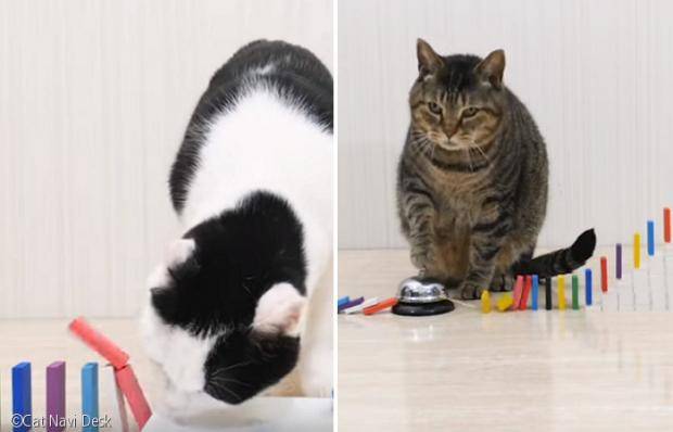 일본에 거주 중인 유튜버 'Cat Navi Desk'은 지난 2020년 3월 15일 반려묘 '키지토라', '시로쿠로'와 함께 도미노 게임을 하는 영상을 공개했다.