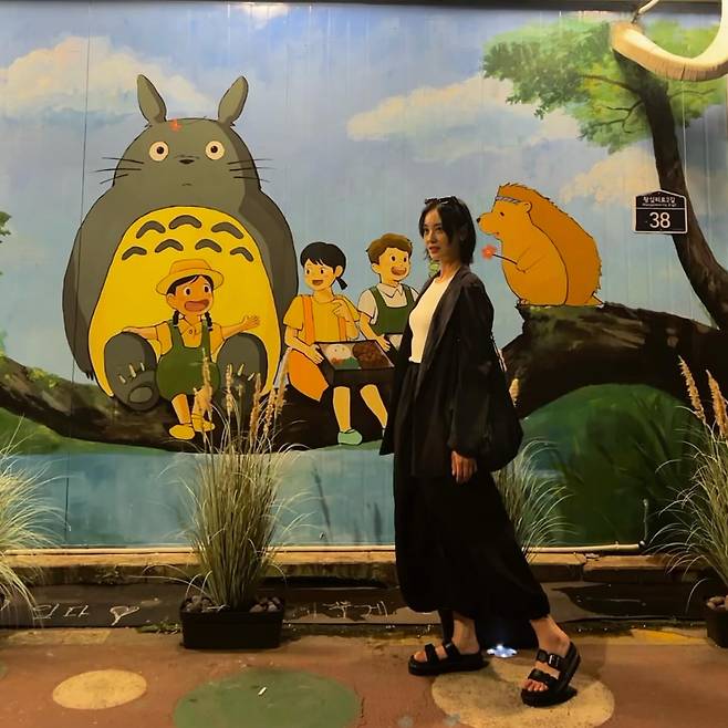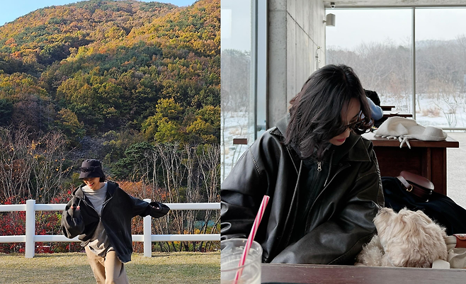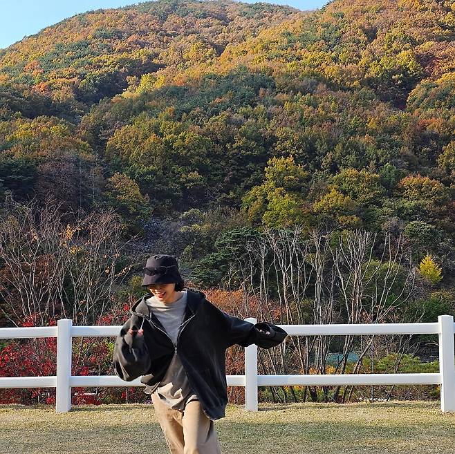 그녀는 오버사이즈 핏의 검은색 집업 후드와 베이지색 팬츠를 조합하여 활동적이면서도 자연스러운 스타일을 선보였다. 이너로는 밝은 회색 티셔츠를 레이어드해 톤을 맞췄으며, 검은색 버킷햇을 더해 자외선 차단이라는 실용성과 힙한 감성을 동시에 잡았다.