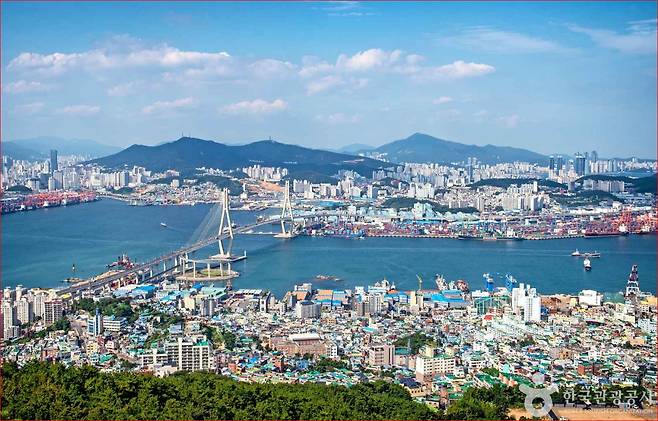 남쪽으로는 부산항대교와 넓은 바다가 시원하게 펼쳐집니다.