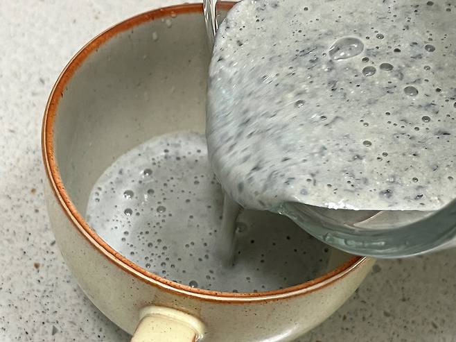 삶은 콩이라 쉽게 갈립니다. 서리태 콩으로 갈았더니 색도 서리태 두유와 비슷하게 나옵니다. 소금, 꿀밖에 넣지 않았지만 콩을 직접 갈아서 사용했더니 훨씬 풍미가 좋습니다.