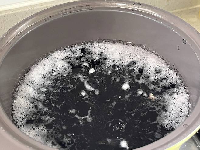 콩은 처음에 강불로 끓이다가 보글보글 거품이 올라오기 시작하면 중불로 낮춰 15분 푹 삶습니다.