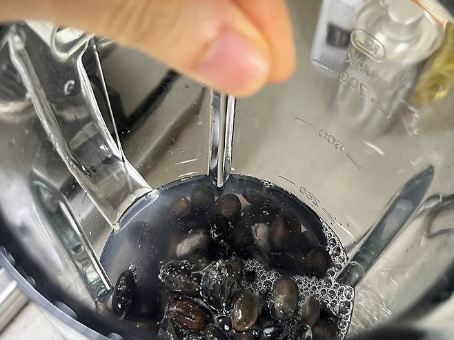삶은 콩은 약 1시간 정도 충분히 식히세요. 뜨거운 콩을 그냥 믹서에 넣으면 믹서기 내부 압력과 온도가 급격히 올라가, 믹서기가 고장 나거나 위험할 수도 있습니다.