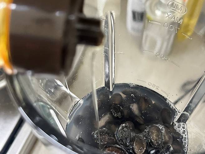삶은 콩은 약 1시간 정도 충분히 식히세요. 뜨거운 콩을 그냥 믹서에 넣으면 믹서기 내부 압력과 온도가 급격히 올라가, 믹서기가 고장 나거나 위험할 수도 있습니다.