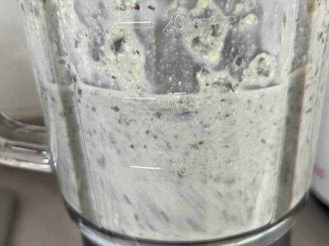 삶은 콩이라 쉽게 갈립니다. 서리태 콩으로 갈았더니 색도 서리태 두유와 비슷하게 나옵니다. 소금, 꿀밖에 넣지 않았지만 콩을 직접 갈아서 사용했더니 훨씬 풍미가 좋습니다.