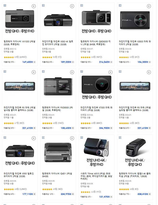 그동안 전방 카메라 해상도가 후방 해상도보다 높았다면, 올해에는 전후방 동일한 QHD(2560x1440) 해상도의 카메라를 탑재한 제품이 증가할 것으로 전망된다. <2024 블랙박스 차트뉴스>를 참고해보자. 금전적인 여유가 된다면 UHD 4K(3840x2160) 해상도를 탑재한 블랙박스가 좋겠지만, 고해상도 촬영은 용량의 압박을 무시할 수 없기에 우리는QHD(2560x1440) 해상도로 타협하는 게 좋겠다.