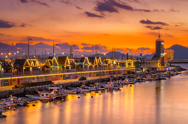 장림포구는 수면 위에 떠 있는 배들과 형형색색의 건물들이 어우러진 모습으로 유명하다.