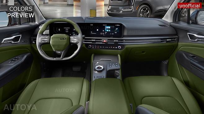 마치 경쟁 모델인 토요타 라브4에서 영감을 받은 듯한 이 디자인은 작은 라디에이터 그릴과 차체 색상과 일치하는 전면부를 특징으로 한다. 또한, 헤드램프와 LED 주간주행등도 완전히 새롭게 구성됐다. 다만, 기아 특유의 ‘타이거 노즈’ 디자인 요소는 그대로 유지했다.