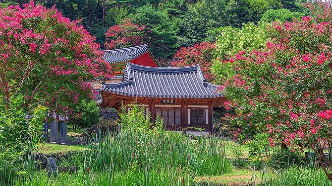 무엇보다 이곳이 특별한 이유는 여름이 깊어질수록 정원 가득 피어나는 배롱나무꽃 덕분입니다. 오래된 나무는 아니지만, 가지런히 가꿔진 정원과 정자, 담장 사이를 붉게 수놓는 꽃들은 그 자체로 한 폭의 동양화 같은 풍경을 만들어냅니다.