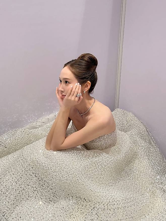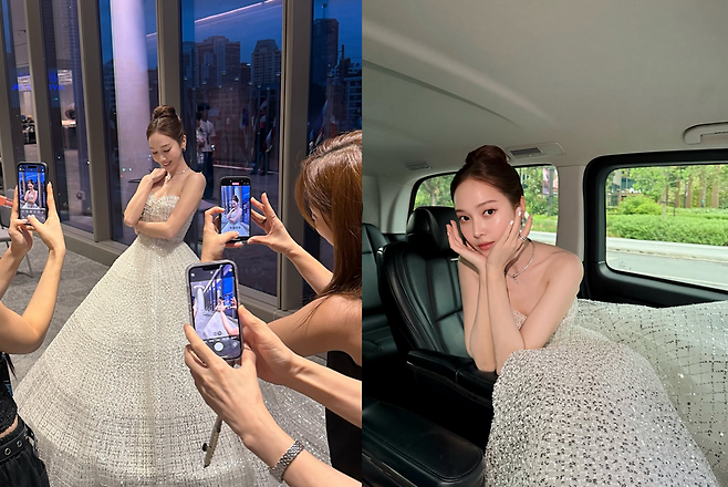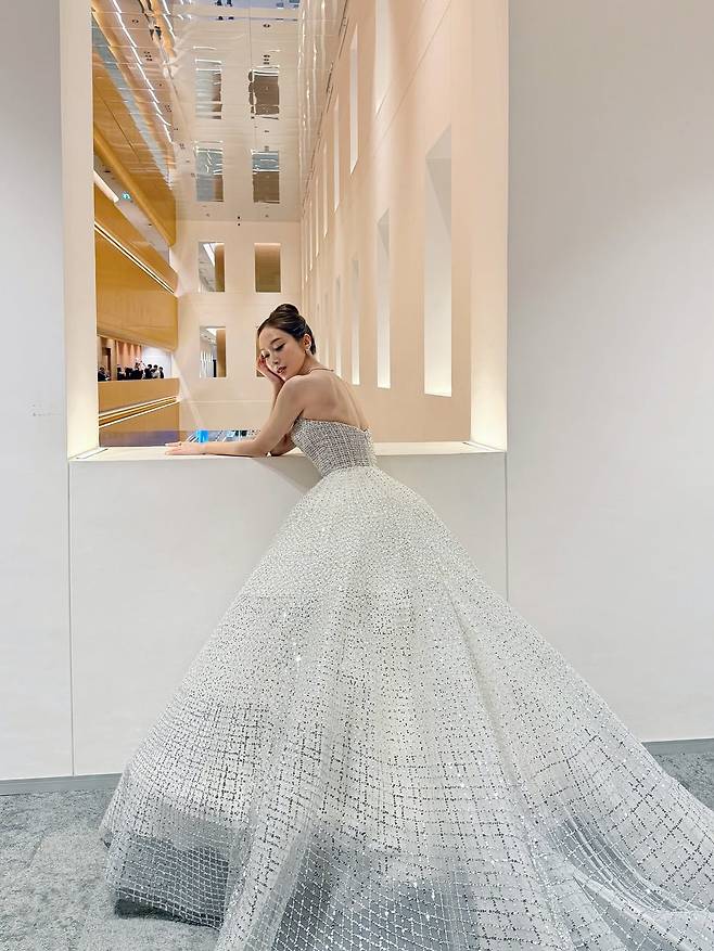 수만 개의 보석을 박은 듯한 화려한 비즈 드레스를 입고, 동화 속 공주님 같은 비주얼을 뽐냈다.