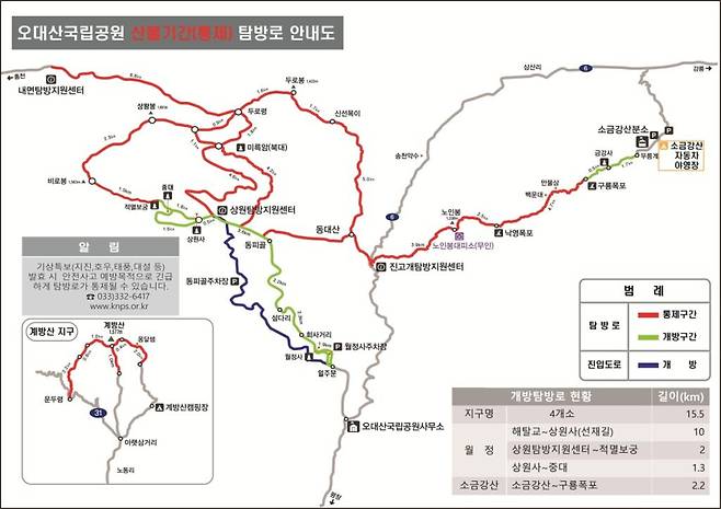 “적멸보궁~동대산 등 핵심 능선 포함 8개 구간 제한”