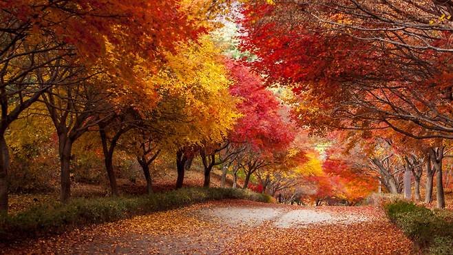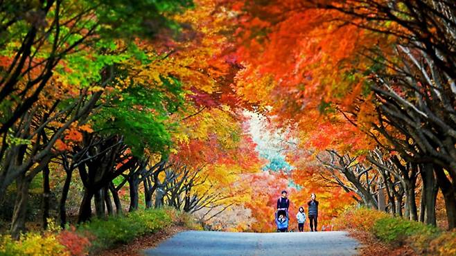 충남 천안시 동남구 목천읍 독립기념관로 1, 독립기념관 외곽 방화도로를 따라 이어진 단풍나무숲길은 1997년부터 조성된 곳으로, 현재는 천안을 대표하는 가을 산책 명소로 자리 잡았습니다.