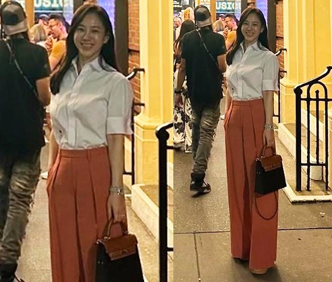 특히 바디라인을 타고 자연스럽게 흐르는 팬츠 실루엣이 다리라인을 길어 보이게 해 시크한 비율을 강조했고, 군더더기 없는 셔츠 핏이 단아한 매력을 배가시켰습니다.