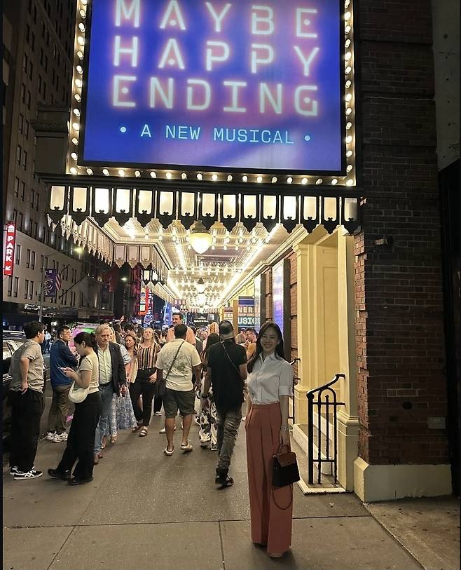 배우 박주미가 24일 인스타그램에 "‘어쩌면 해피엔딩’ 한국 창작 뮤지컬 최초로 토니상을 수상한 이 작품은,감각적인 연출부터 배우들의 섬세한 연기,시차의 졸음마저 깨우는 아름다운 음악까지 감성적이면서도 따뜻한 이야기로 마음에 잔잔한 여운을 남기는 무대였습니다🤍#MaybeHappyEnding #브로드웨이뮤지컬 #TonyAwards"라는 글과 함께 여러 장의 사진을 게재했습니다.