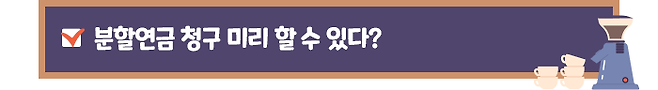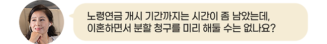 이혼을 하고 한참이 지난 다음 이 같은 조건을 일일이 따지기가 말처럼 쉽지 않습니다. 자칫 잘못하면 청구 기한을 지나쳐 버리기 십상입니다. 이 같은 문제를 해결하기 위해 도입한 것이 분할연금 선청구 제도입니다.